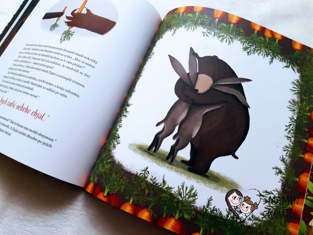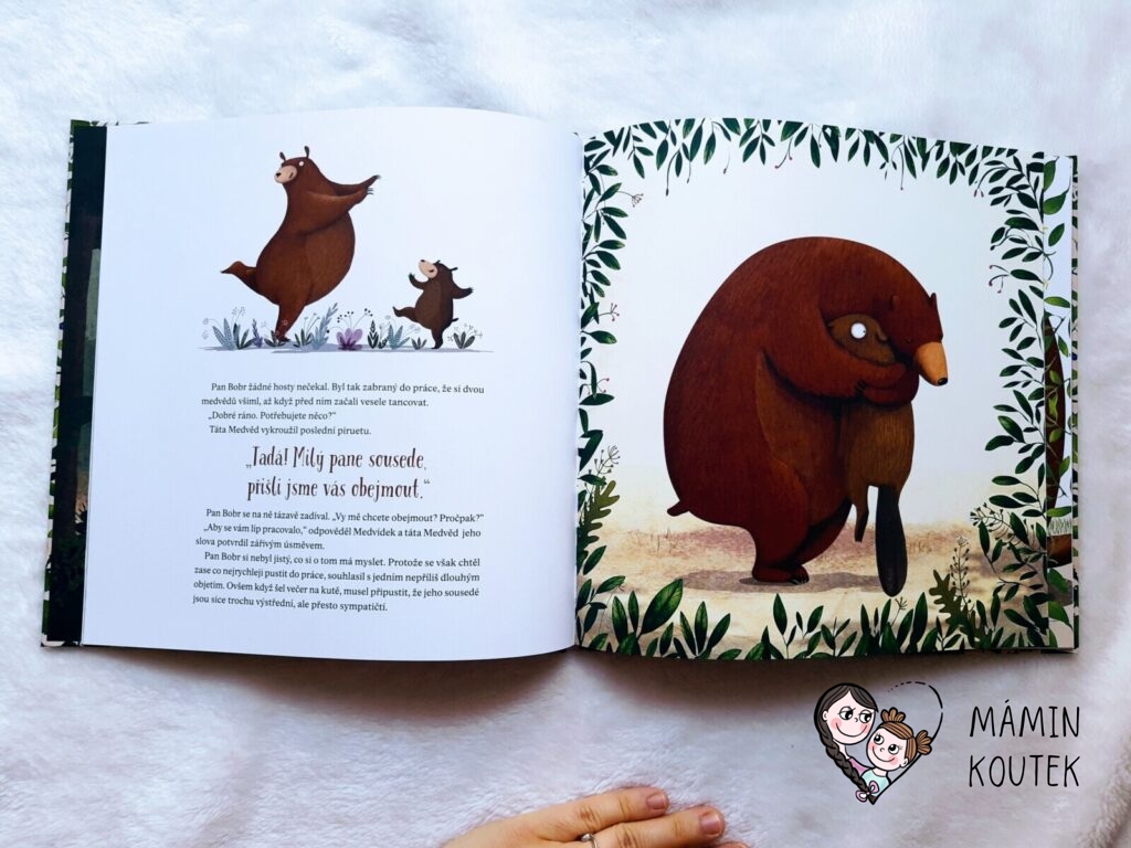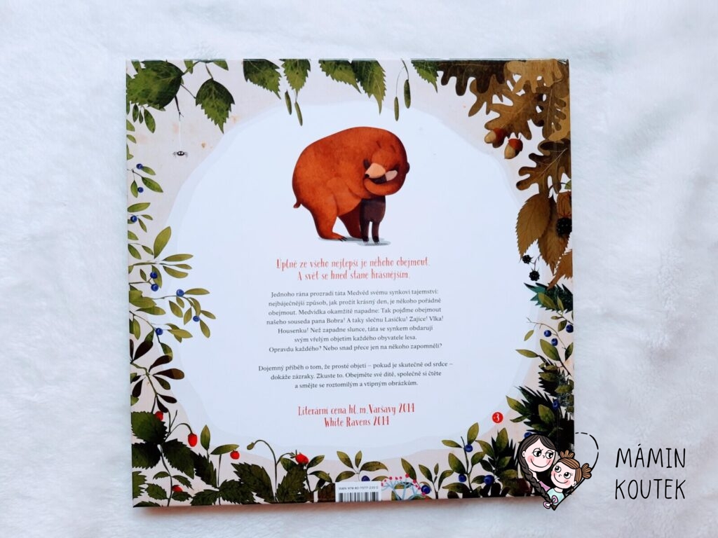 Kniha Obejmi mě, prosím přináší moc milý a dojemný příběh o dvou medvědech – otci a synovi. Vypráví o jejich vztahu, společném dobrodružství a hlavně dětem ukazuje, jak může objetí rozjasnit den a udělat spoustu radosti. V dnešní době, kdy je radosti málo, je to určitě téma, které si zaslouží pozornost.