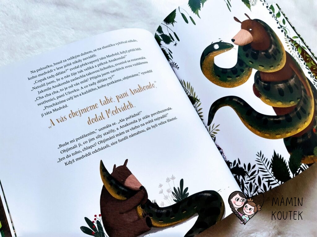 Dále táta Medvěd s Medvídkem obejmou losa, hada, užovku, housenku, Hajného a spoustu dalších zvířátek.