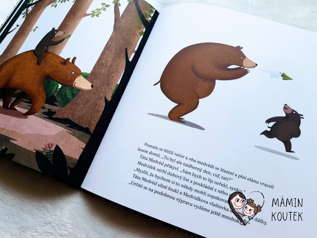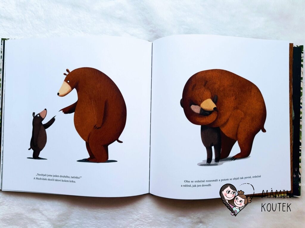Na konci dne Medvídek skočí tátovi kolem ruku a obejmou se i spolu…