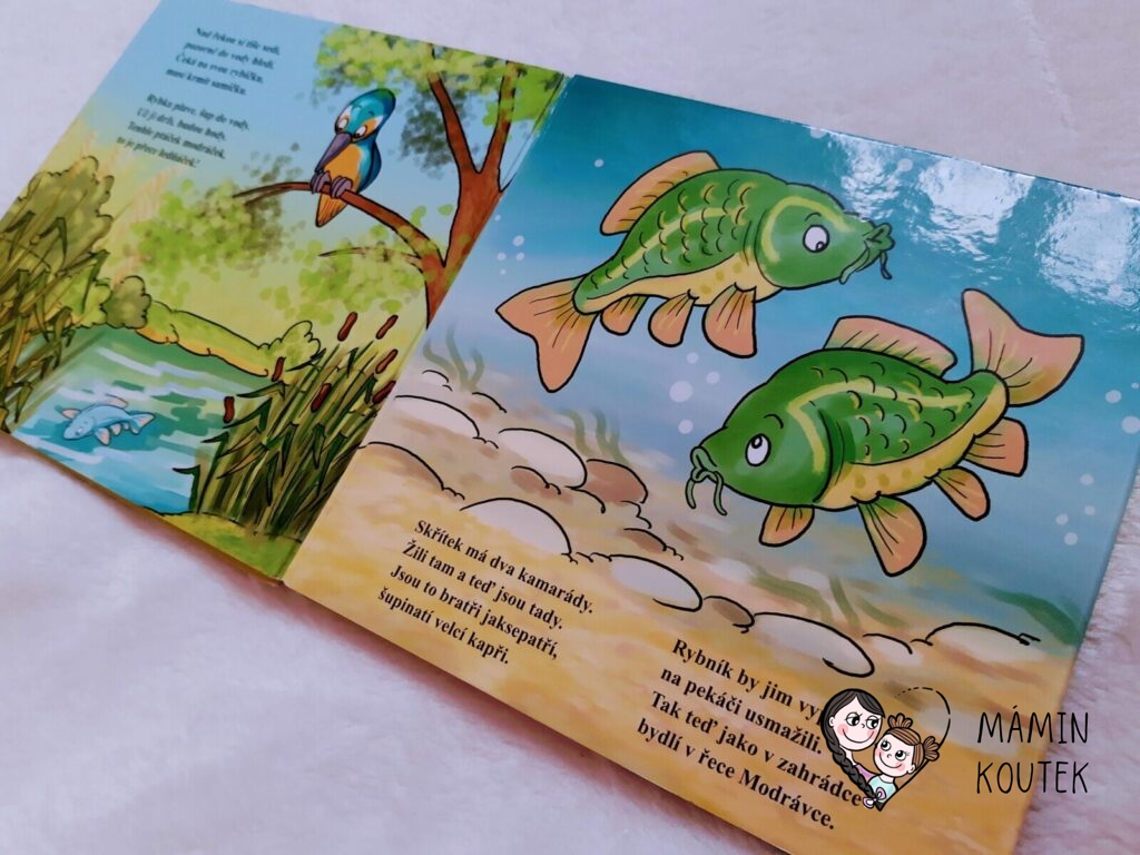 A co dělá Ledňáček na větvičce? „Čeká na svou rybičku, musí krmit samičku.“ Na závěr se pak seznámíme s Medovníčkovými kamarády – dvěma kapry.