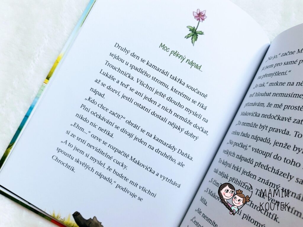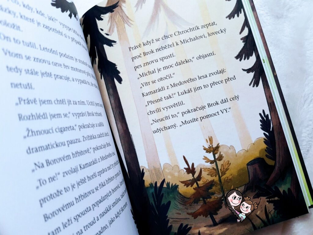 Jak už bývá u příběhů o kamarádech z Medového lesa zvykem, tvoří i tento nový díl krátké kapitoly, které jsou doplněné o půvabné barevné obrázky. Písmena jsou trochu větší, takže se dobře kniha čte i začínajícím čtenářům. Příběh má spád a je napínvý, že jsme ho u nás četli skoro jedním dechem.