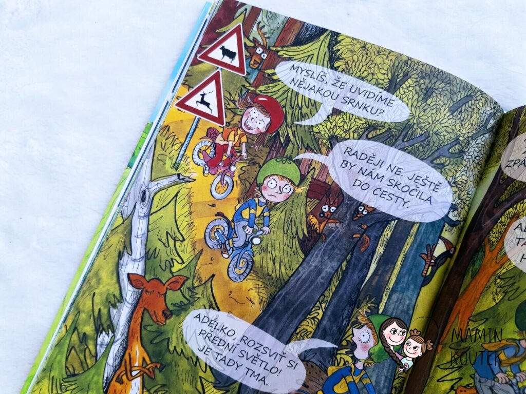 V příběhu nenajdeme jen suchý popis dopravních značek, které potkají. Tyto informace jsou ukryté do jednoduchého a krátkého dialogu mezi Martínkem a Adélkou, kteří popisují, proč kde jedou, co zde mohou či nemohou dělat a na co si dát pozor. Vždy tak usuzují podle značek, které míjejí a které jsou na stránkách zakreslené. Děti se tak mohou učit o dopravních značkách nevědomky, což se mi líbí, protože je to rozhodně zábavnější než jen prohlížet naučnou knížku.