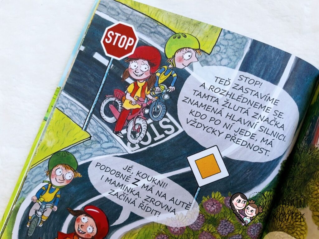 Začíná opět obddobí, kdy jsme často venku a mnohdy i s odrážedlem (a později snad i kolem). Beky už jezdí kus přede mnou a i když se jí snažíme nabádat k bezpečné jízdě, stoprocentní to není. A tak jsem hledala, jestli třeba není knížka, kterou bychom četli a nenápadně se jí přitom připomínalo, jak se na cestách chovat.