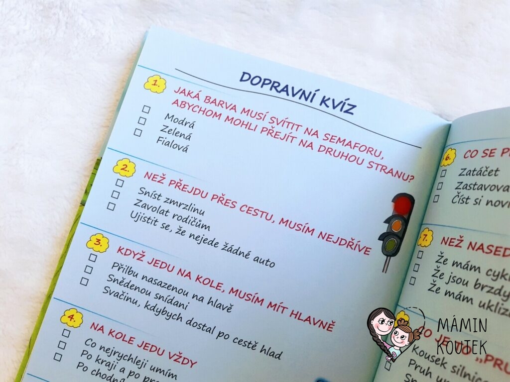 Po příběhu následuje dvoustránkový dopravní kvíz, který prověří základní znalosti dětí o jízdě v provozu.