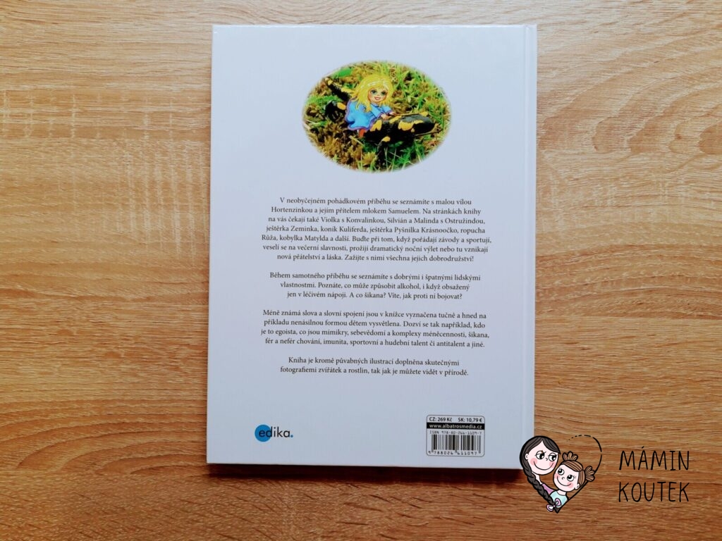 Děti se v příběhu dozvídají informace o různých rostlinkách – konvalinka, hlohyně, třapatka, hortenzie a jiné. Kromě textu jsou součástí reálné obrázky, na kterých děti vidí, jak dané rostlinky skutečně vypadají. Zároveň jsou v rámci příběhu vysvětleny i trochu složitější pojmy jako šikana, bezpráví, egoista, skandovat, recese, komický a jiné. A celkově mi kniha přijde, že se snaží působit výchovně – děti tedy vidí, co všechno může zvířátka na zahradě ohrožovat, jak by se měli všichni k sobě chovat anebo že pít medovinu není jen tak, protože se poté může motat hlava.