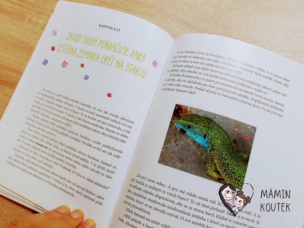Poté už byly závody slavnostně odstartovány. Chvíli to sice vypadalo, že skončí rychle a zle, protože Pyšnilka Krásnoočko škaredě urazila ještěrku Zeminku, která se z toho rozplakala. Postavili se ale za ní všechna zvířátka a Pyšnilku vykázali pryč. Protože se chovala nefér a myslí vždy jen na sebe, což se prostě nedělá.