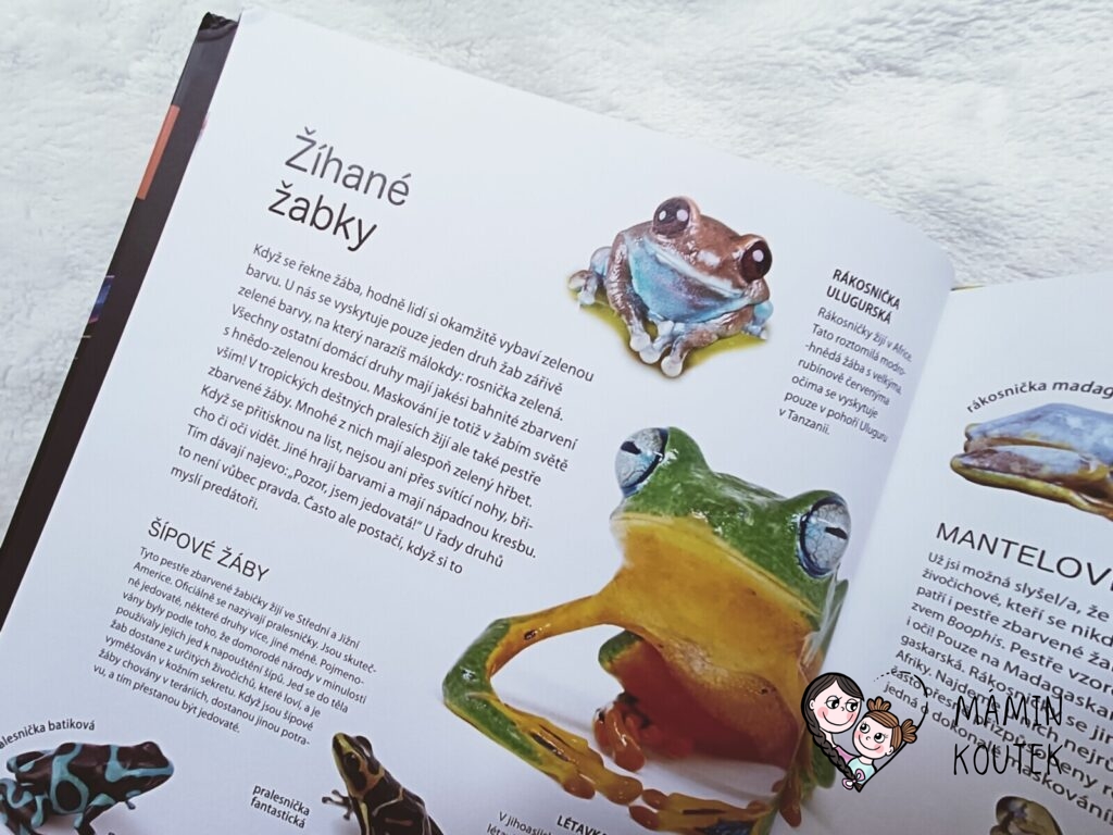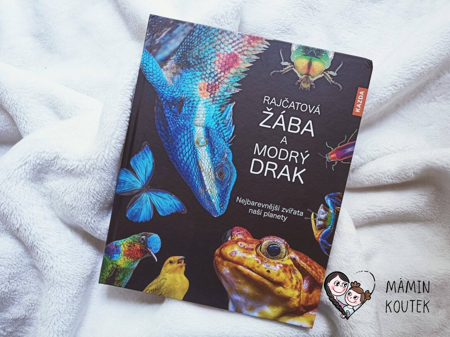 Kniha Rajčatová žába a modrý drak dětem ukazuje, jak neotřelá, pestrá a nádherná může být příroda okolo nás. U Nakladatelství Kazda jsem si už zvykla, že naučné knížky o zvířatech mají zpracované trochu jinak, než je zvykem. Vždy mě ale překvapí, jaký nový pohled ještě najdou. A poukázání na barevnost je vydařené, protože knížka zaujme nejen informacemi, ale také po vizuální stránce.