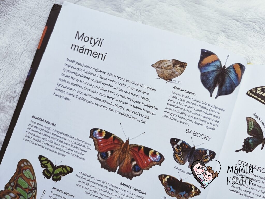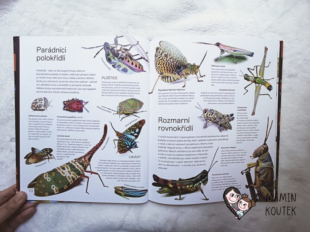 Ze skupiny hmyzu jsou uvedeni například polokřídlí či rovnokřídlí živočichové (cikády, ploštice aj.). A samozřejmě motýli, které budou děti možná i znát (babočky, otakárci či kometa zářivá).
