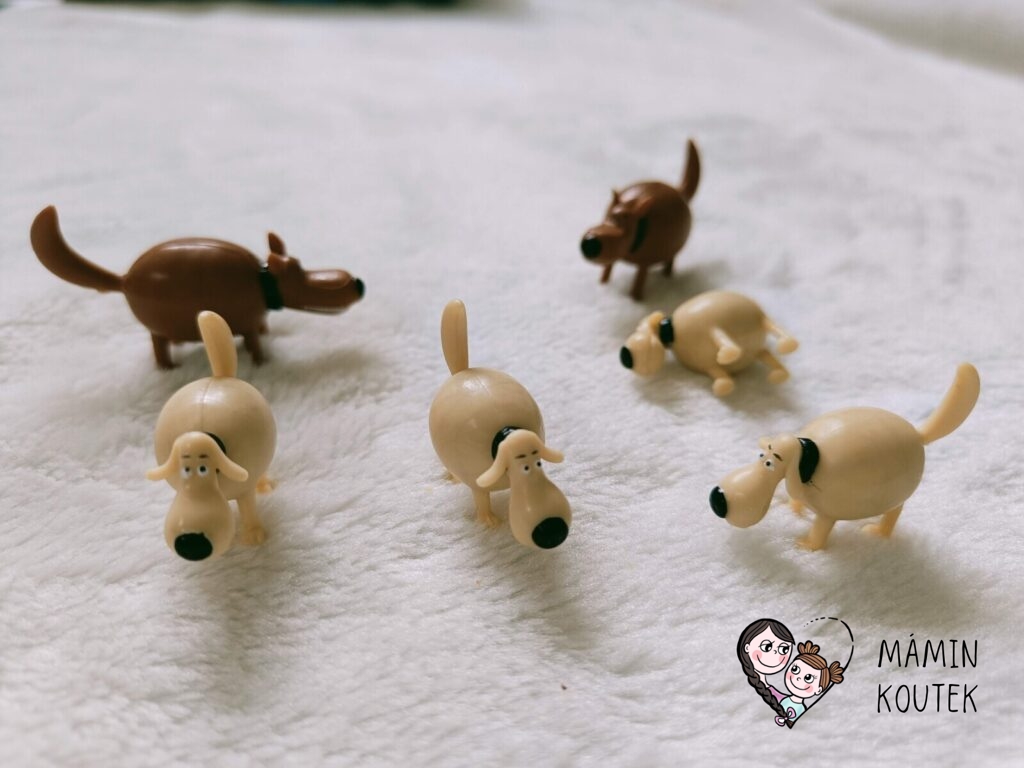 A na závěr je třeba zmínit ještě psy – v balení jsou 4 figurky velkých psů a 2 figurky malých psů. Hráčům pomíhají ochranit zvířata.