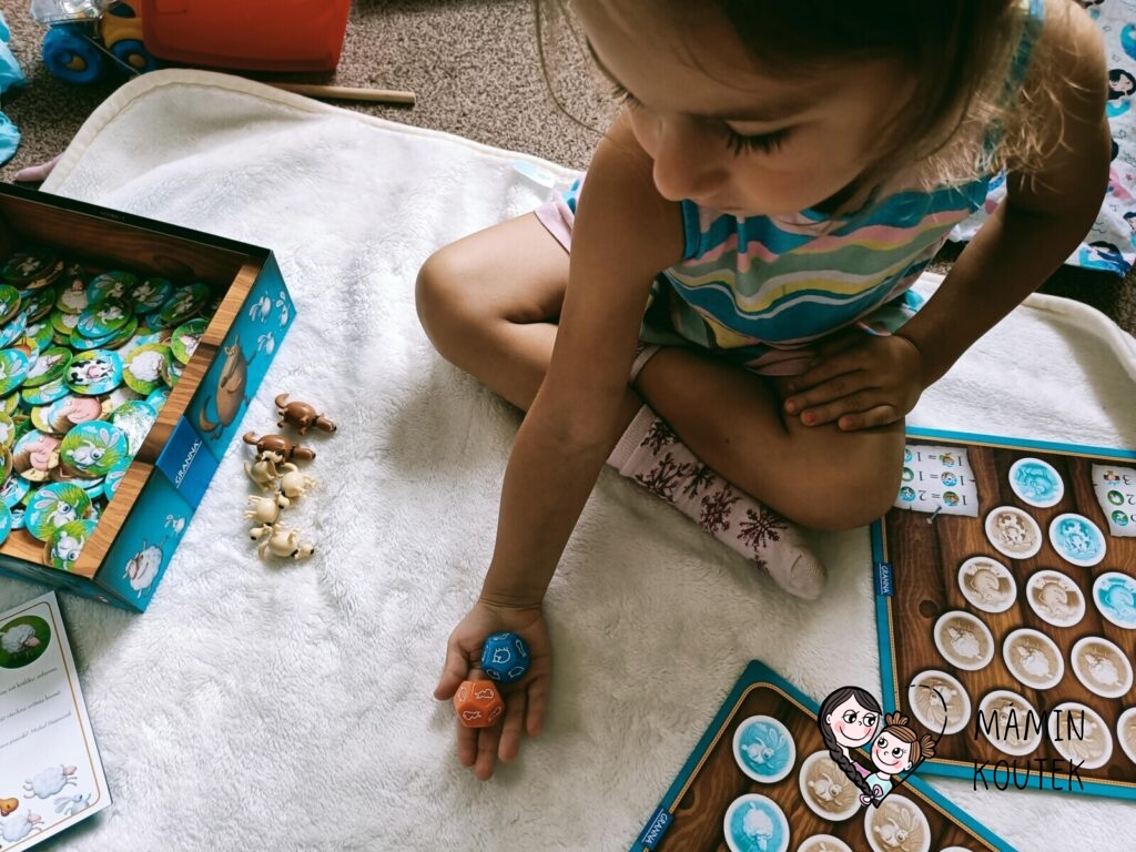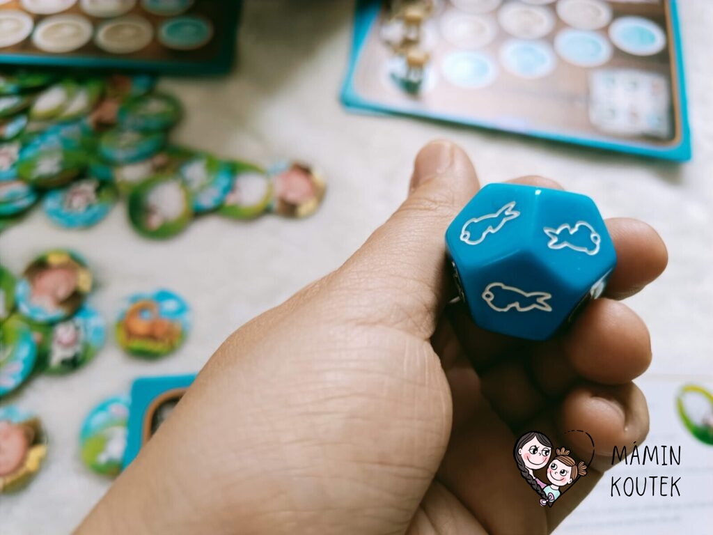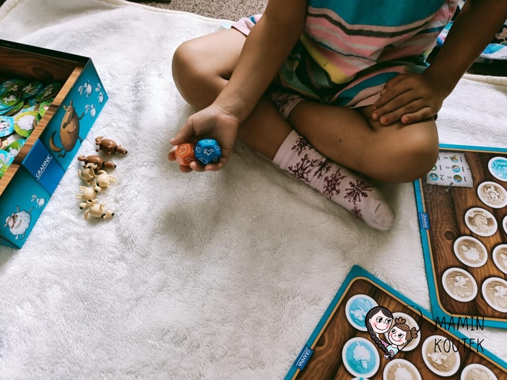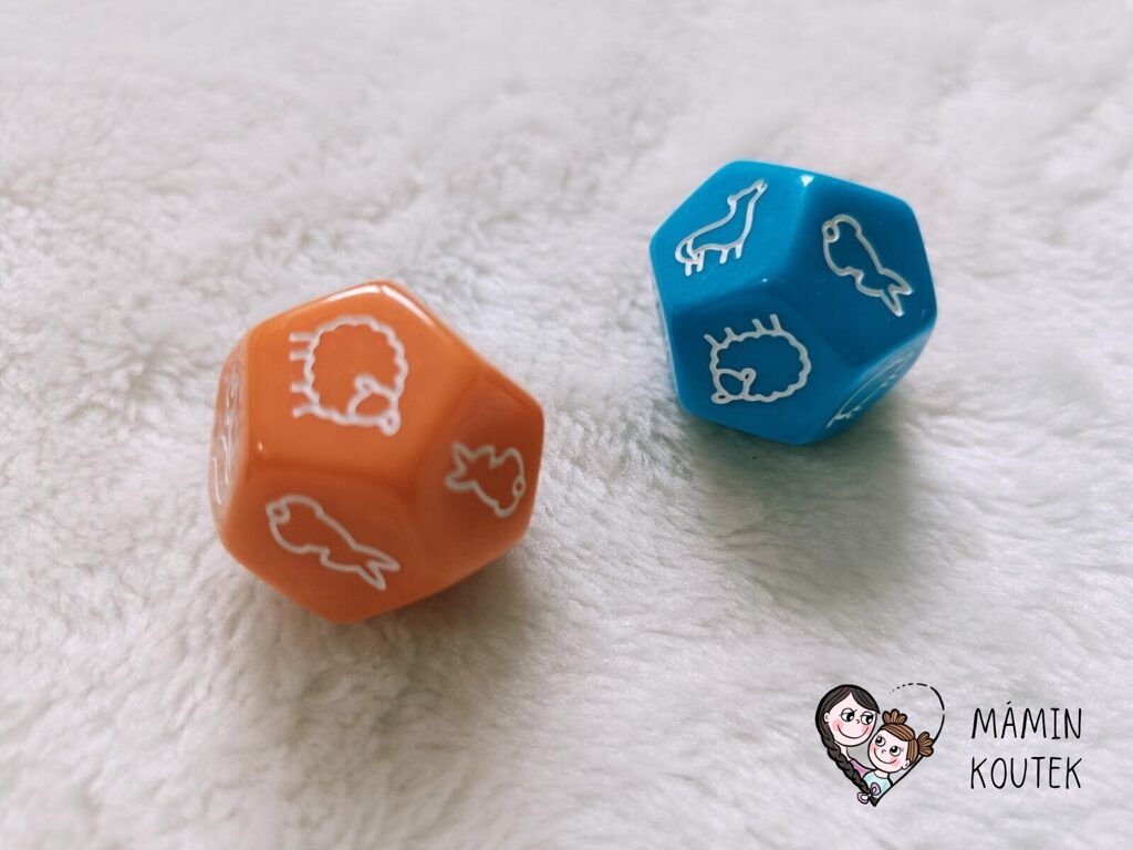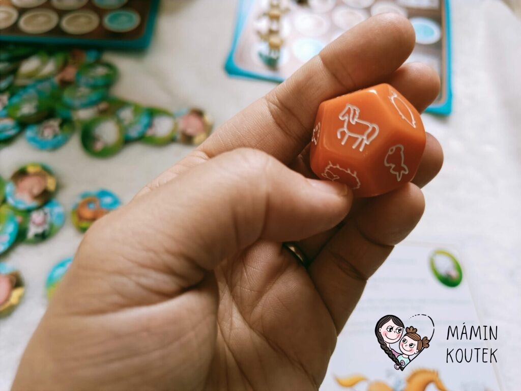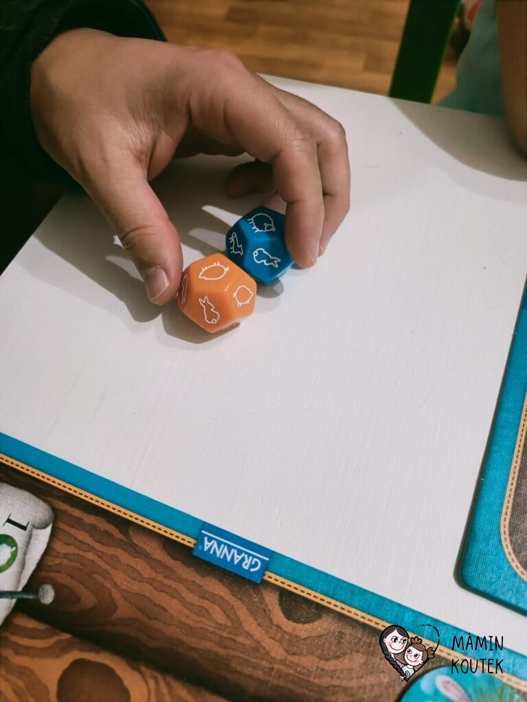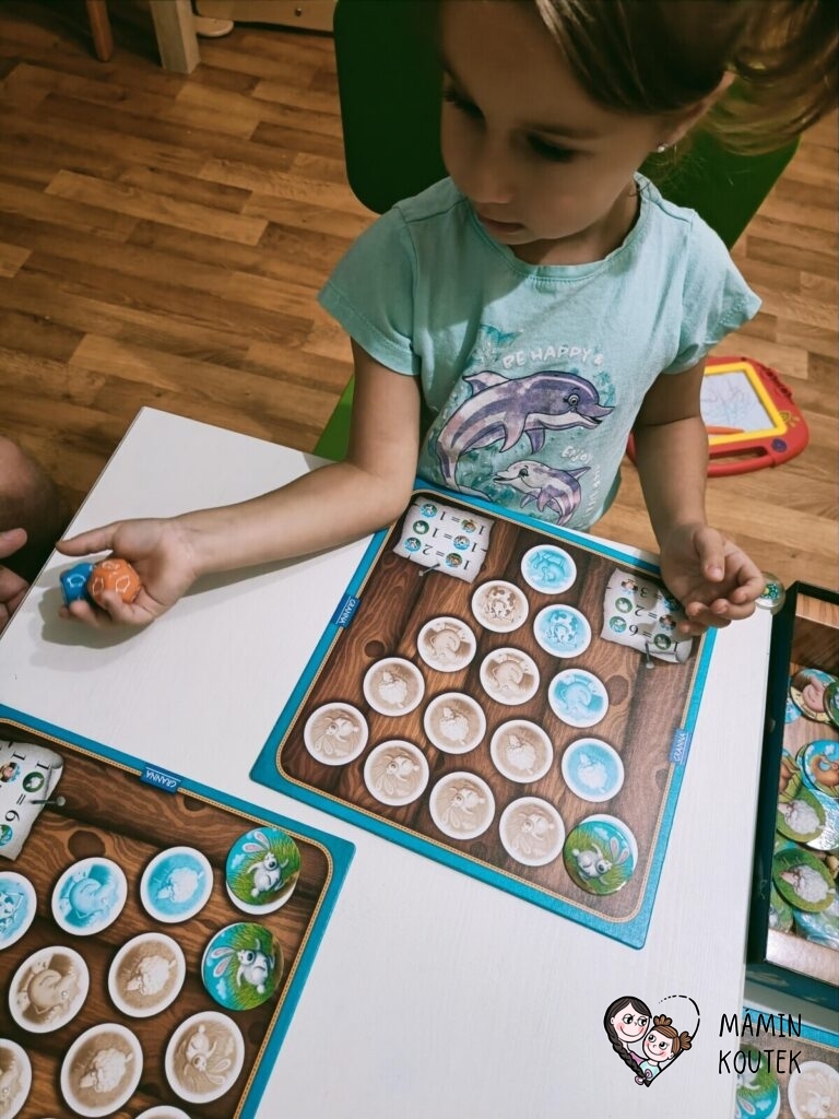 Na kostce jsou některé obrysy mírně zmatečné, mohly být jasnější. Ale jinak je hra krásně graficky zpracovaná. Z hlediska věku je určena pro děti od 7 let a dospělé, ale nebála bych se zkusit i dříve. Beky ve 4,5 letech princip pochopila, ale ještě bylo třeba ji někdy navést, že má měnit zvířata a bylo to na ní i delší. Ale za rok či dva by už hru mohla hezky zvládnout.