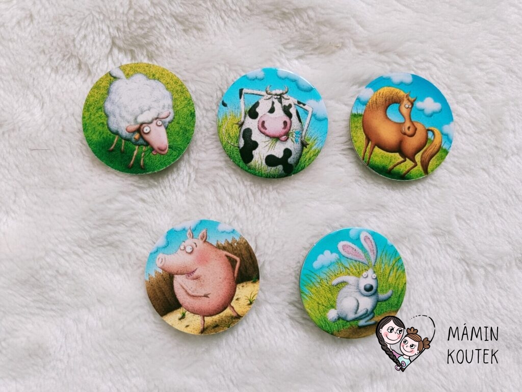 • 120 kartiček s obrázky zvířat (králik, ovce, prase, kráva, kůň)