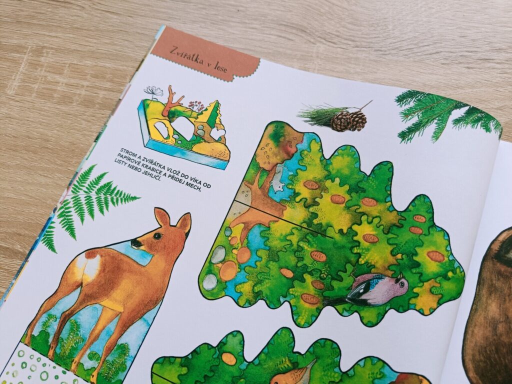 Vystřihovány jsou různé. Na děti například čekají zvířátka v lese, kde si mohou vytvořit vlastní les se srnkou, liškou, veverkou, divokým prasátkem a dalšími obyvateli. Sestavit si také mohou vlastní atlas lesních plodin a hub.