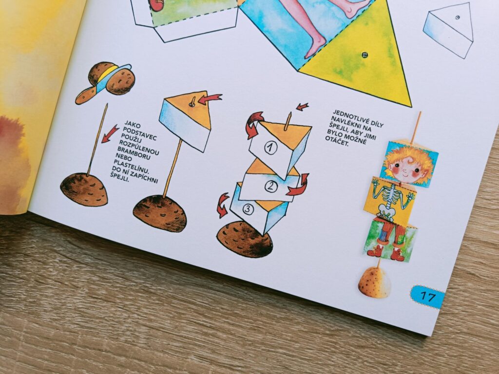 Na další stránce nalezneme kamna, na které mohou děti vystřihnout také různé dobroty. A poznávat budeme i lidské tělo – děti si mohou stavit tři krabičky, které umístí na sebe a pak skládají lidské tělo.
