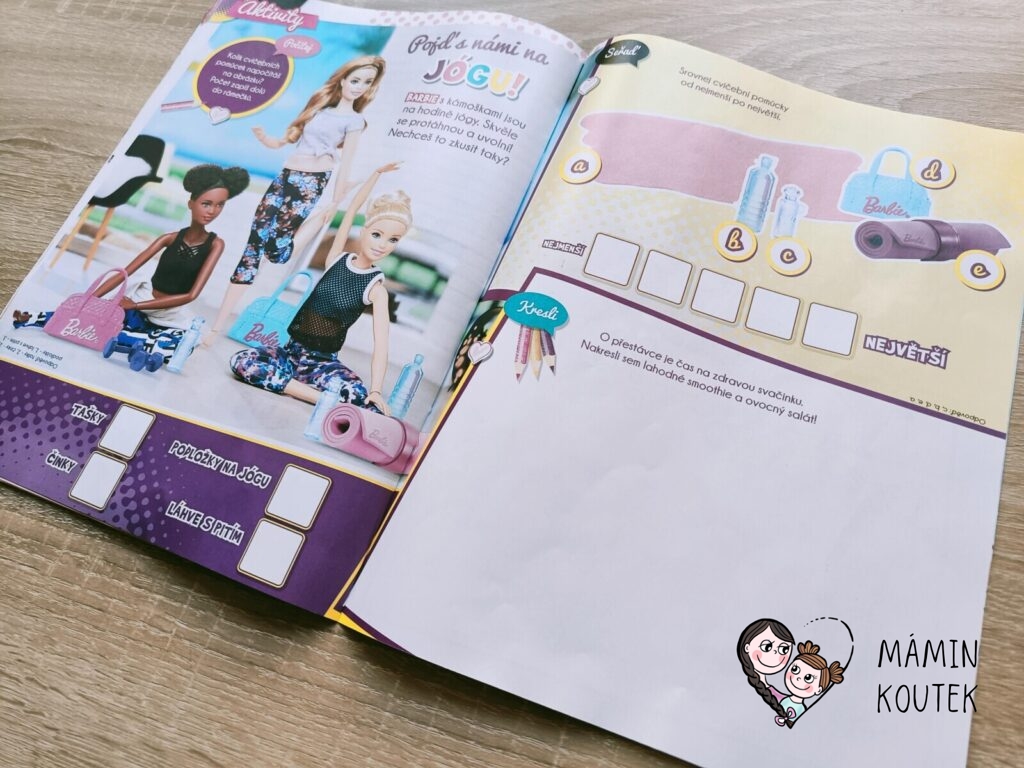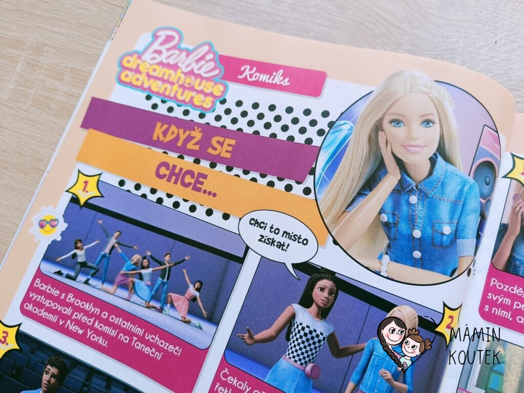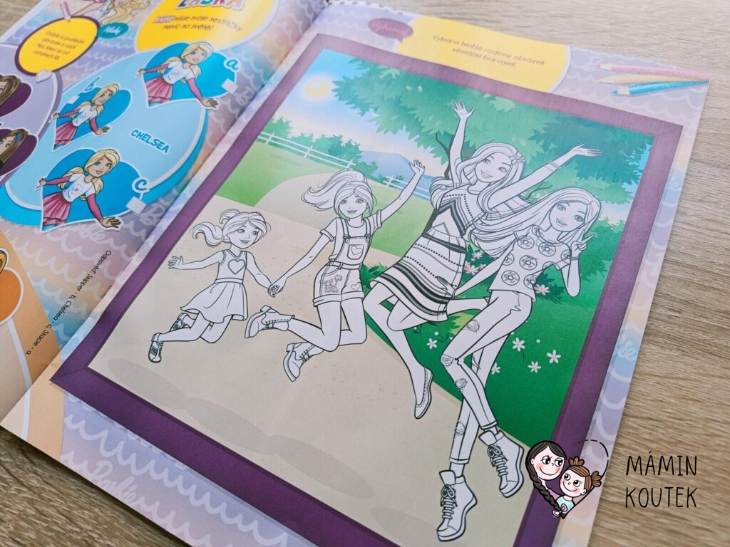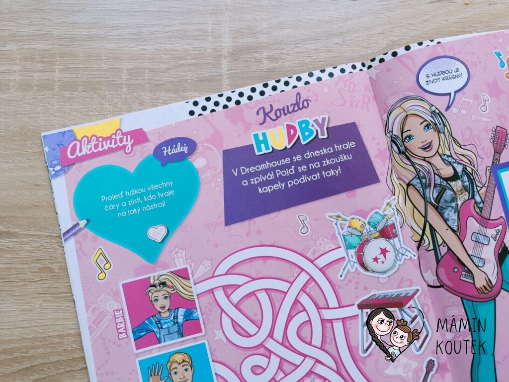 Součástí je také vybarvování, kreslení, plakát na zeď nebo čtyřstránkový komix, který se zaměřuje na Barbie dreamhouse adventures.