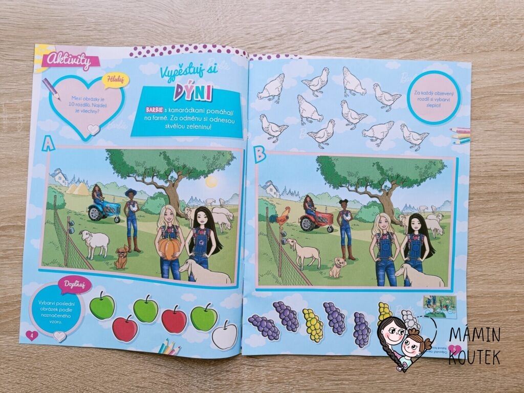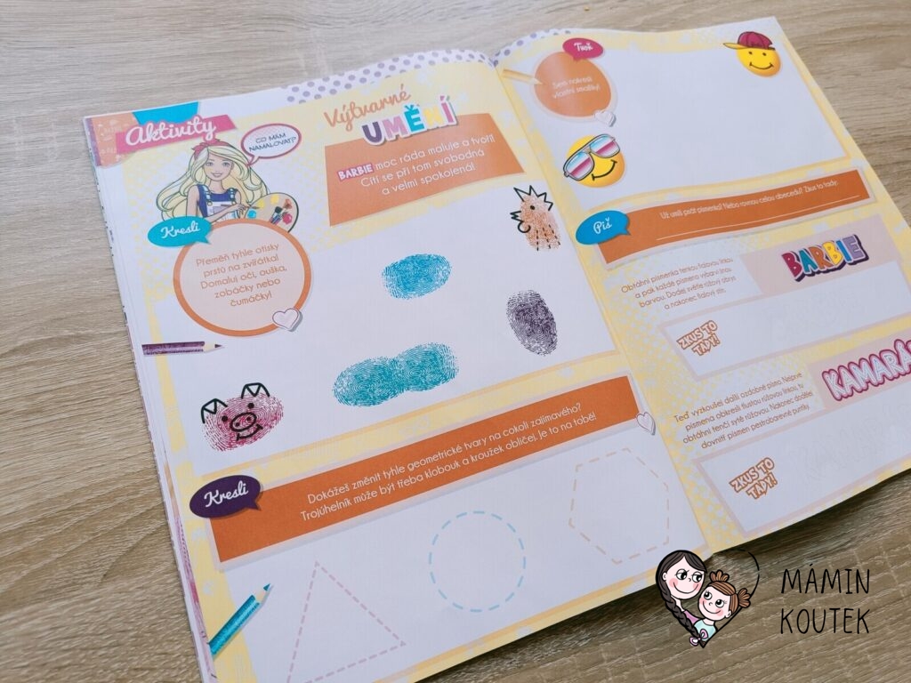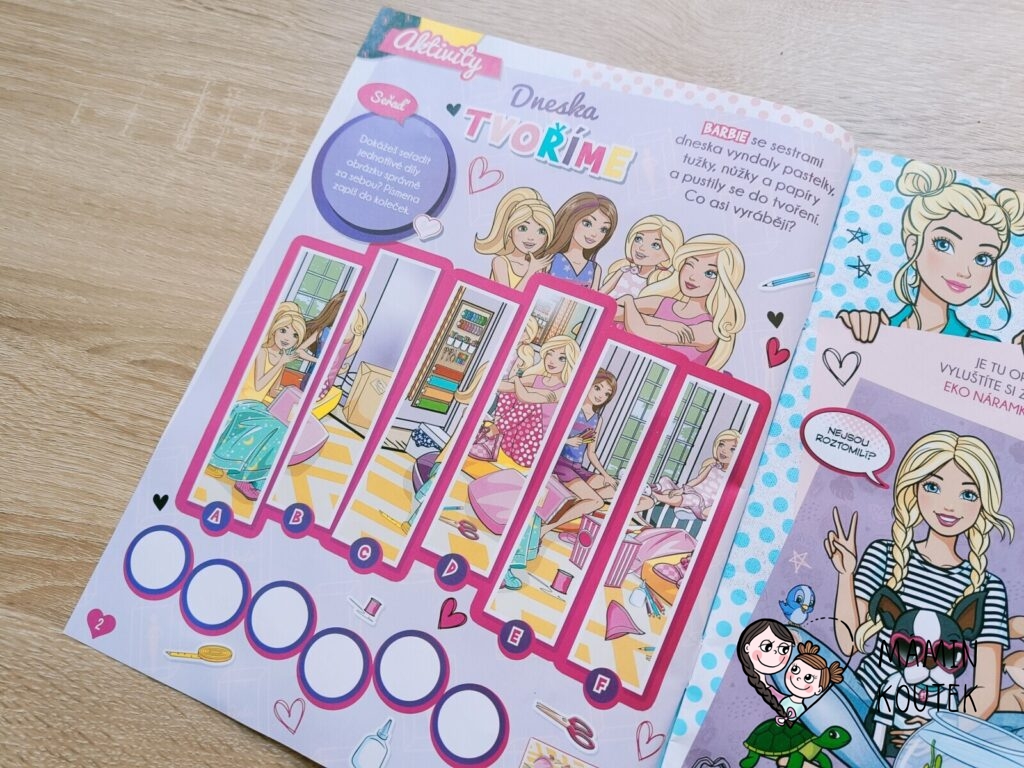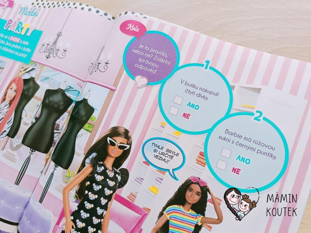 Součástí je také vybarvování, kreslení, plakát na zeď nebo čtyřstránkový komix, který se zaměřuje na Barbie dreamhouse adventures.