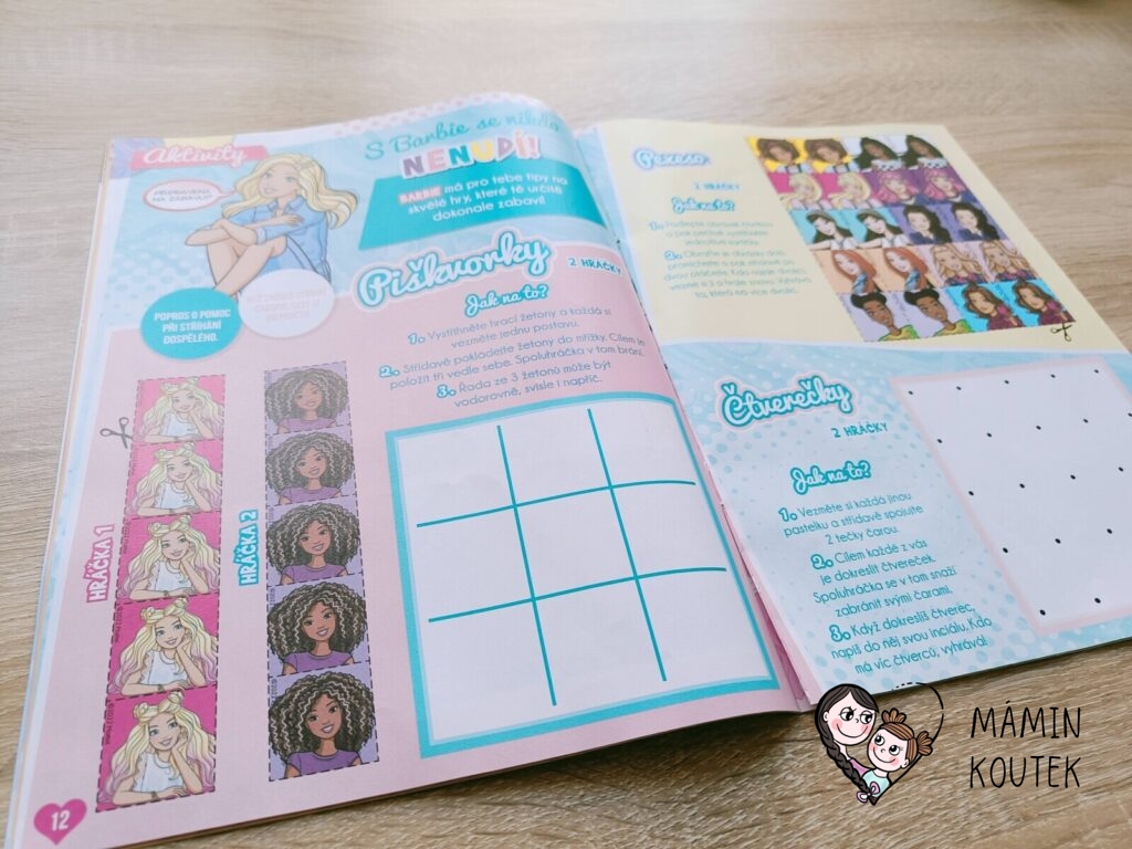 Časopis Barbie je z měkkého papíru, takže pokud chcete využít například pexeso či piškvorky, doporučuji tuto stránku zalaminovat a až poté rozstříhnout.