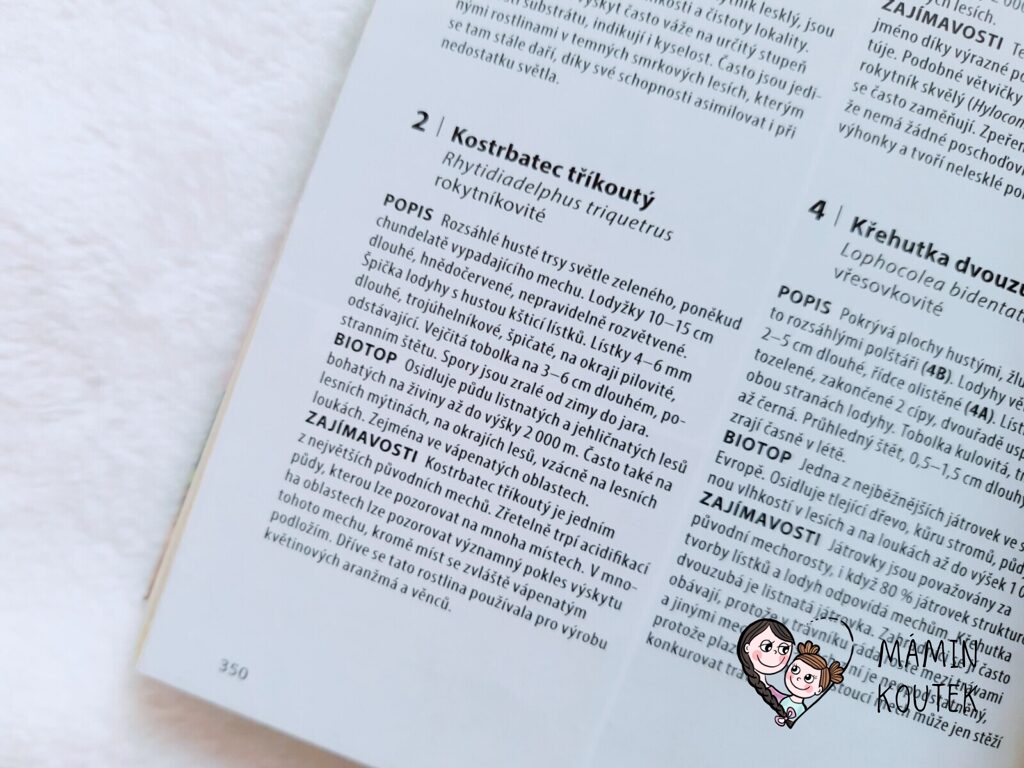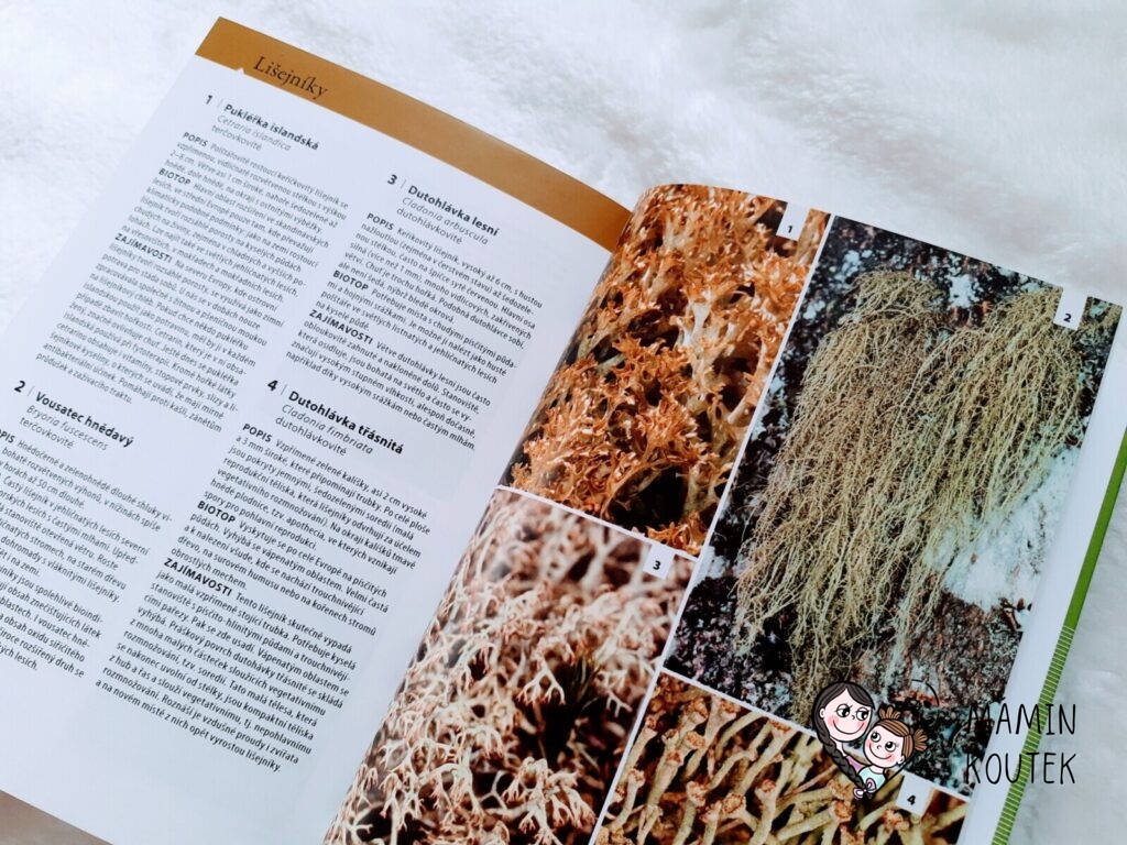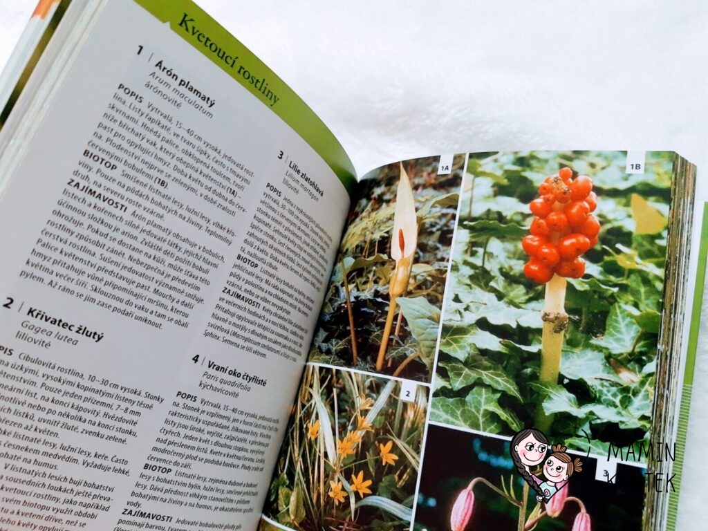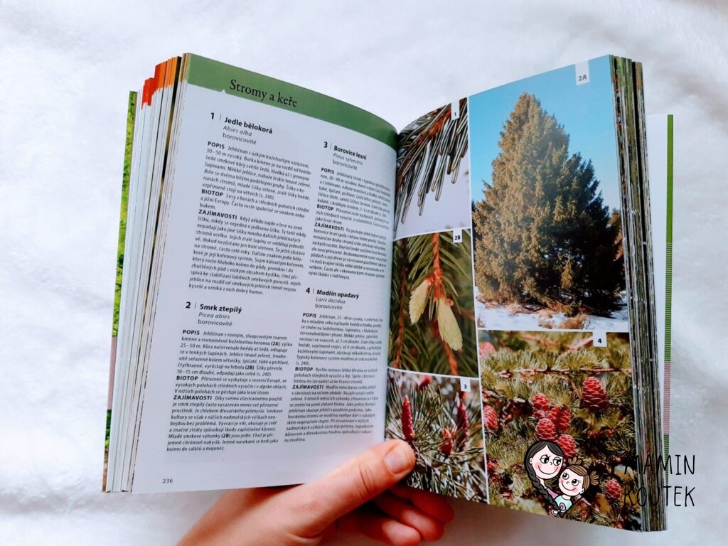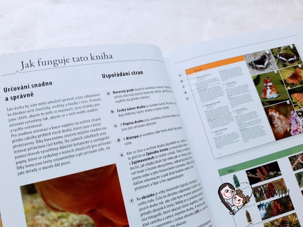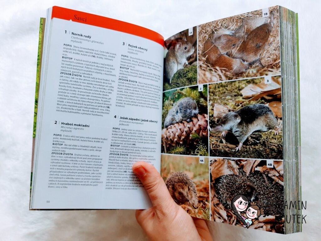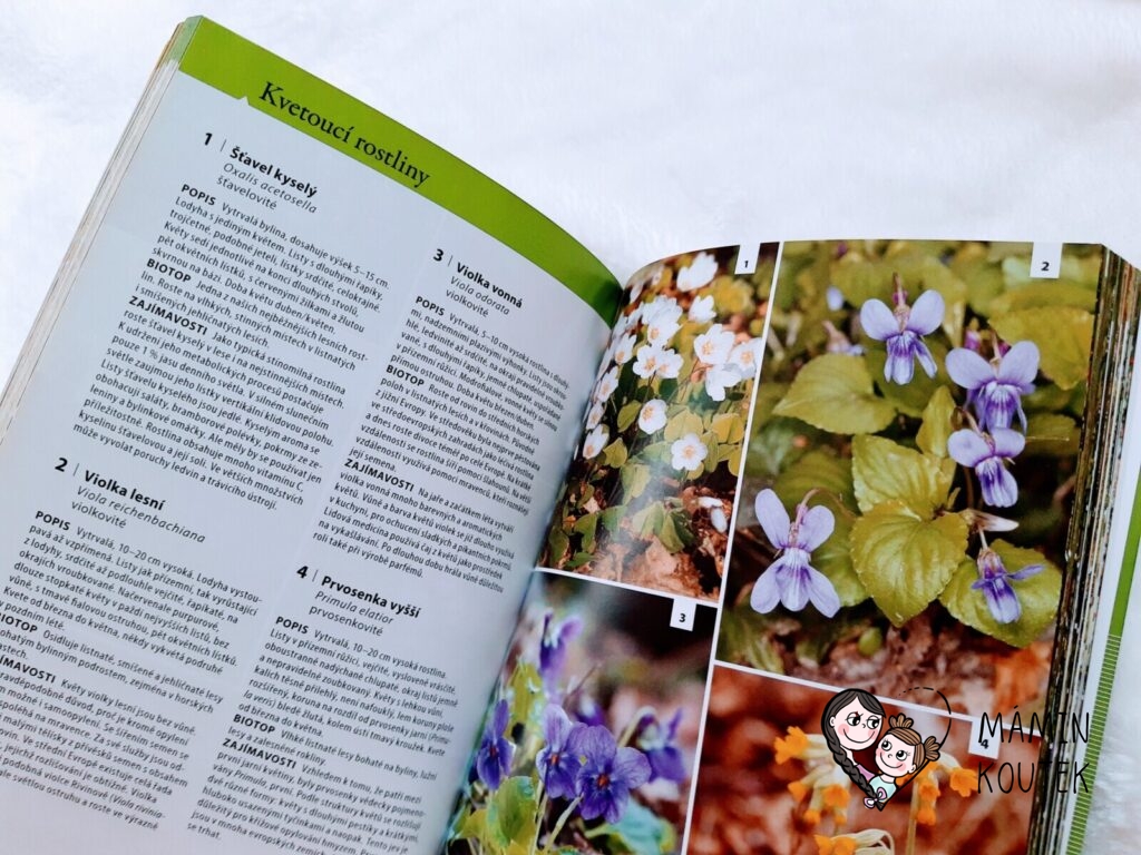 Jediné, co mi na knize trošku vadilo, bylo menší písmo, na které nejsem úplně zvyklá. Ale na krátké vyhledání rostlin či zvířat to naštěstí tolik nevadilo. Kdyby bylo písmo větší, byla by kniha rozsáhlejší, což už by pak ztratilo původní smysl – mít malého pomocníka, kterého vezmete všude se sebou a můžete si rychle vyhledat, co máte zrovna před sebou.