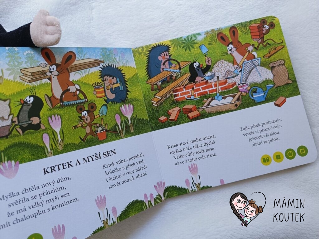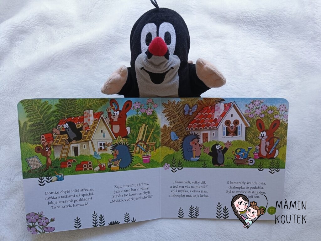 Jako první děti najdou v knížečce pohádku o tom, jak chtěla myška nový dům. A krtek neváhal a společně se svými kamarády se snažili myšce její sen splnit. Nakonec se povedlo a myšce postavili krásný domeček.