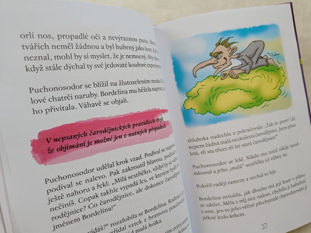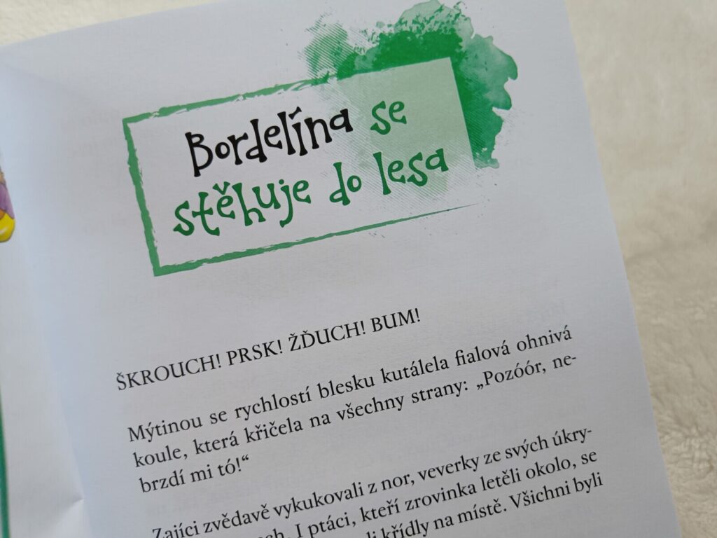 Jindy zase Bordelína celý les zaneřádí barevnými lístečky nebo začaruje vodu. Kdo se jí napije, bude celý týden v duhových barvách.