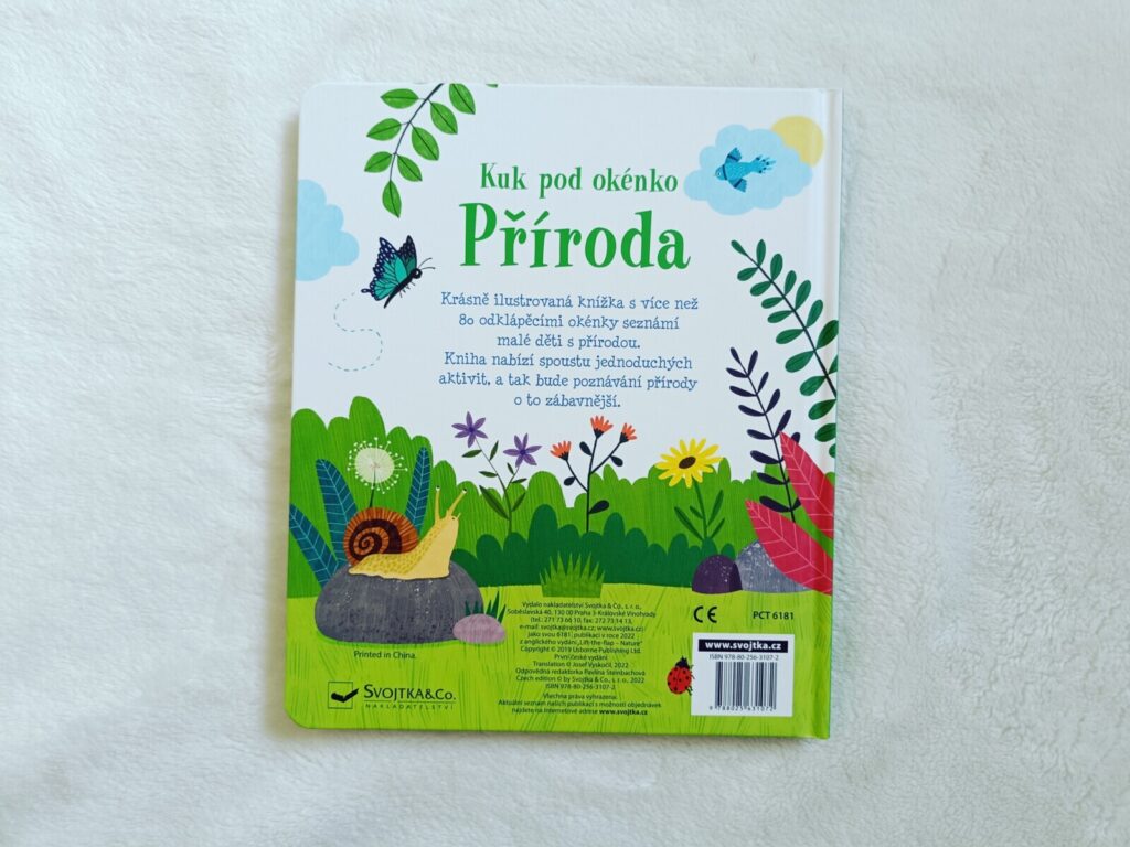 Leporelo pro děti Kuk pod okénko – Příroda přináší spoustu informací o rostlinách a zvířatech, se kterými se můžeme (nejen u nás) setkat. Informace děti zjišťují díky otevírání okének, kde najdou další podrobnosti nebo obrázky. Na většine stránek nechybí ani vyobrazení několika prvků, které maji děti hledat.