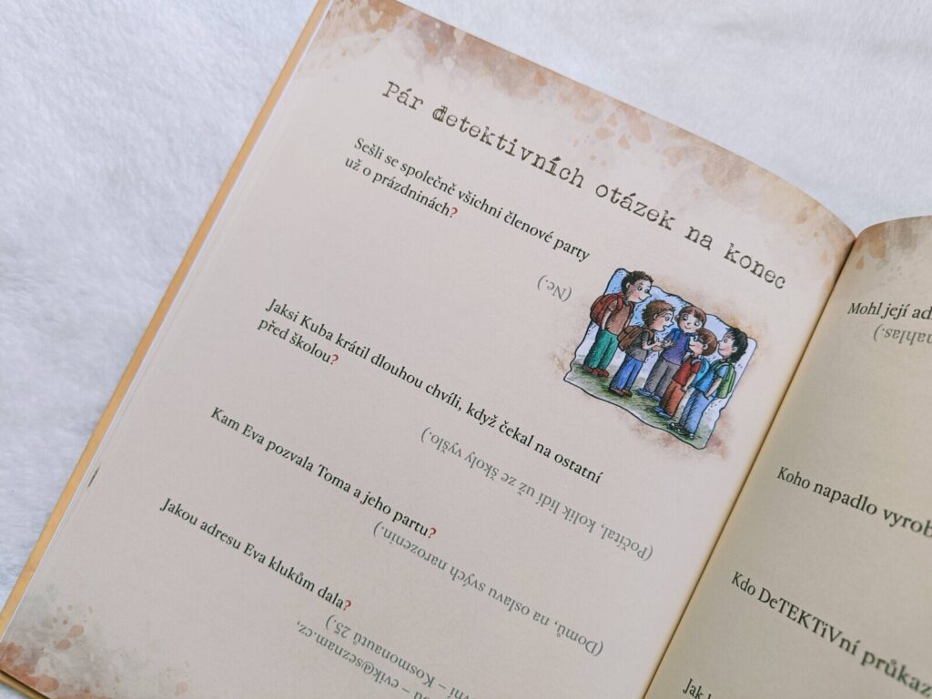 Na konci knihy na děti čekají detektivní otázky, které prověří, jestli při čtení dávaly pozor. Nechybí také krátké představení všech členů party DeTEKTiVové.