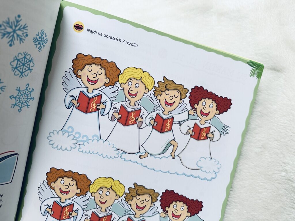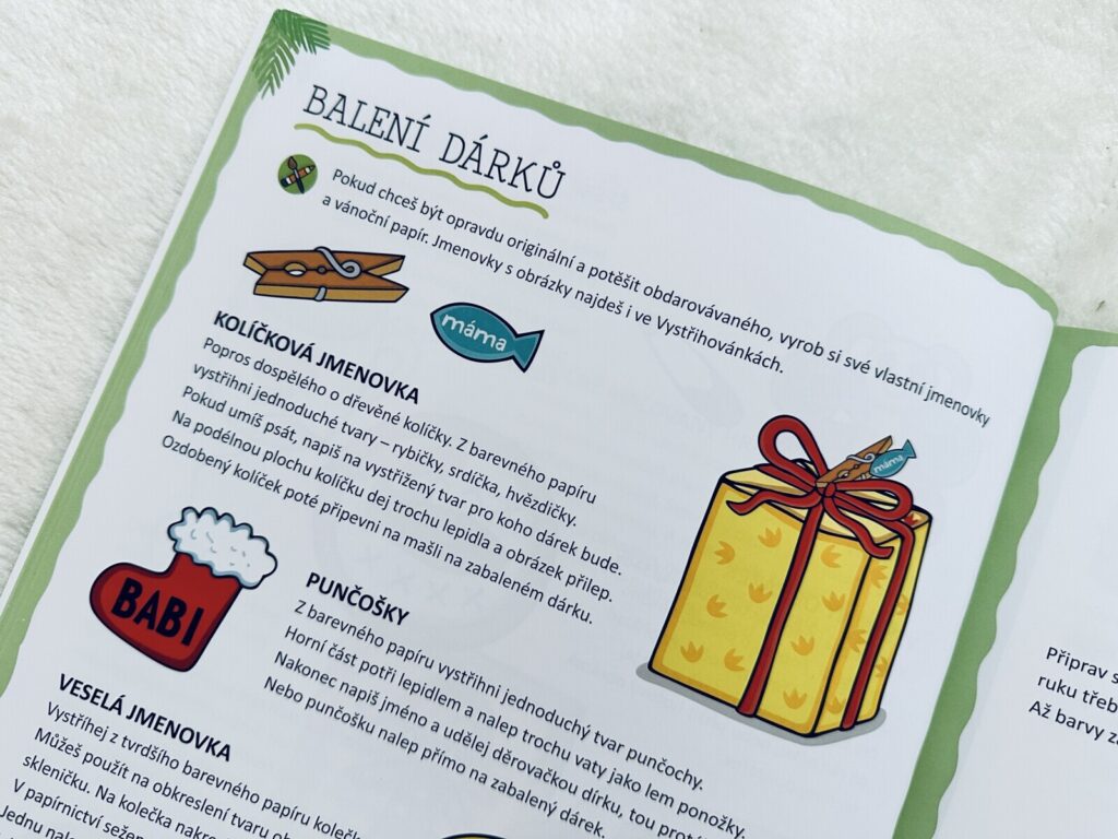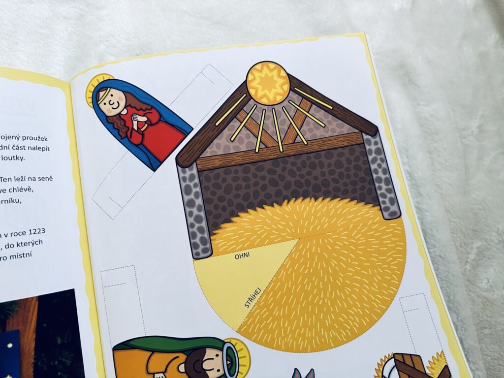 V druhé části knihy jsou pak různé vystřihovánky, které mohou děti využít (např. betlém, adventní kalendář, dopis pro Ježíška, obrázkové loto nebo třeba jmenovy na dárky).