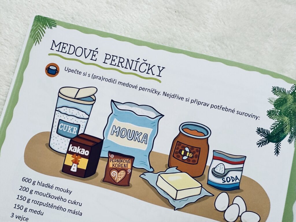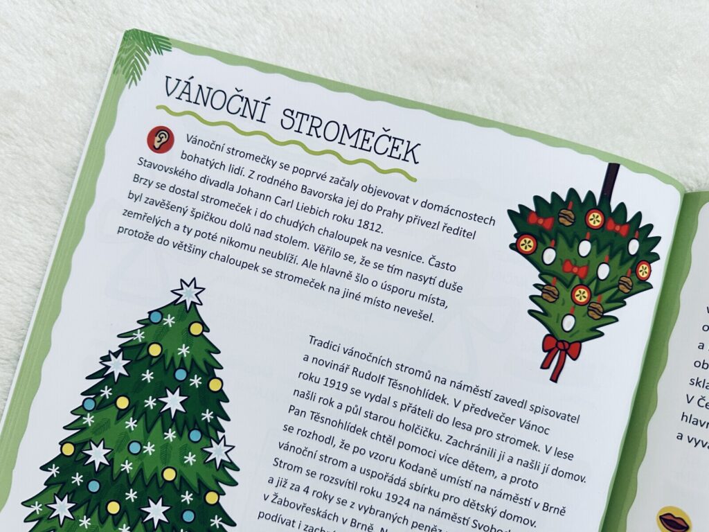 Kniha se zaměřuje na období od svátku sv. Martina až po Tři krále. Najdete v ní například hry, poznávání vánočních tradic, tvoření, úkoly, hádanky nebo recepty, které si můžete doma s dětmi vyzkoušet.
