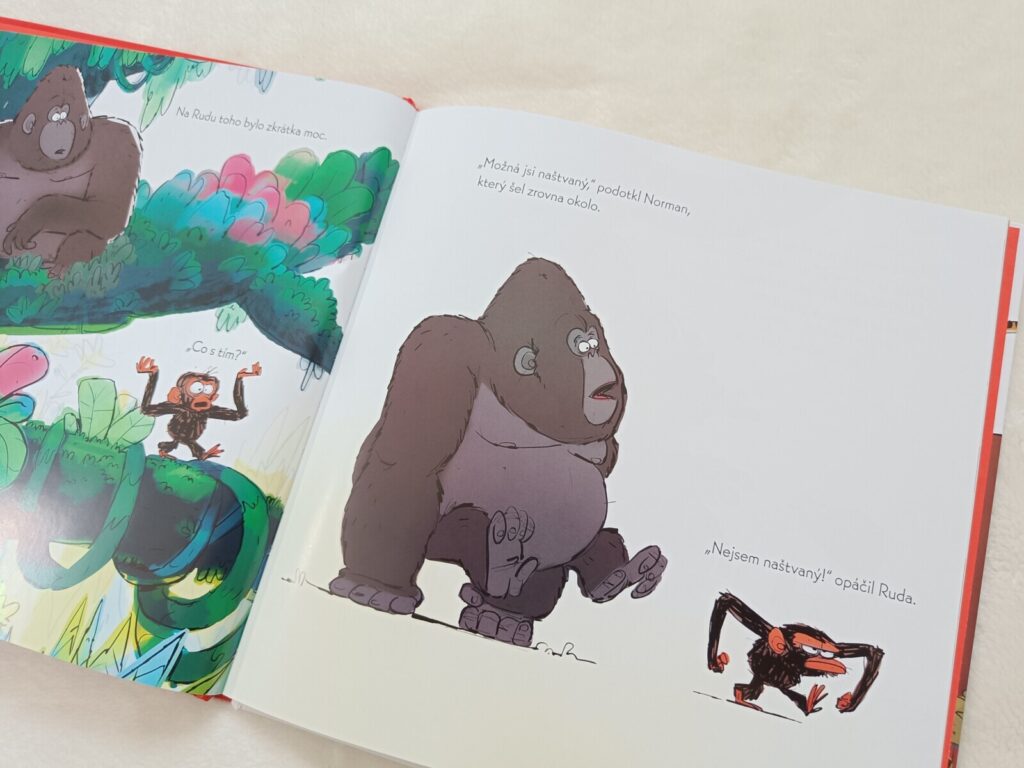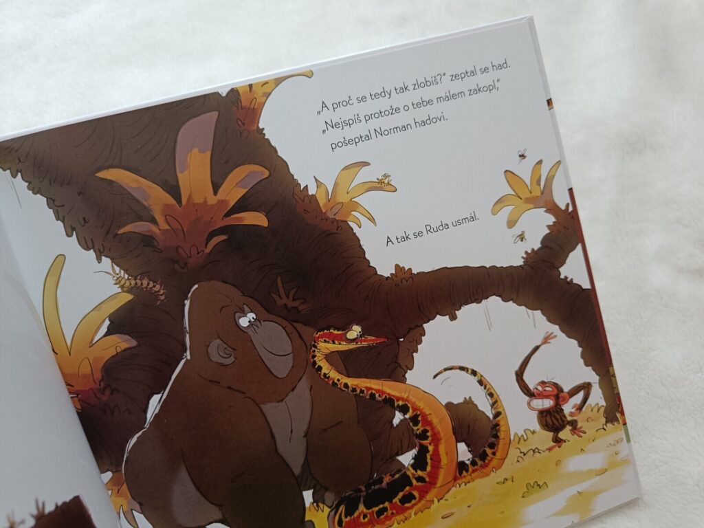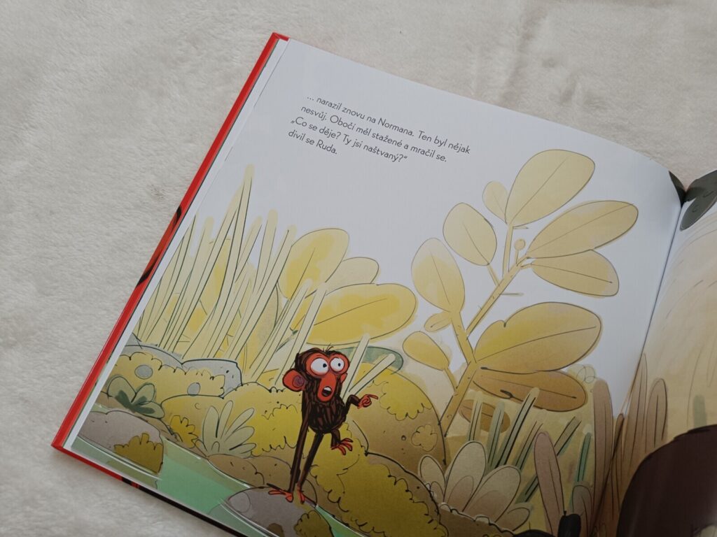 Když jsem poprvé měla v rukou knihu Nevrlý Ruda, nevěděla jsem, co od ní čekat. Líbilo se mi na první pohled, že dominují velké obrázky a v knize je minimum textu, což má mladší dcera ráda (taky se není čemu divit, když od mala jedeme Horáčkovy knihy, které jsou na stejném principu).