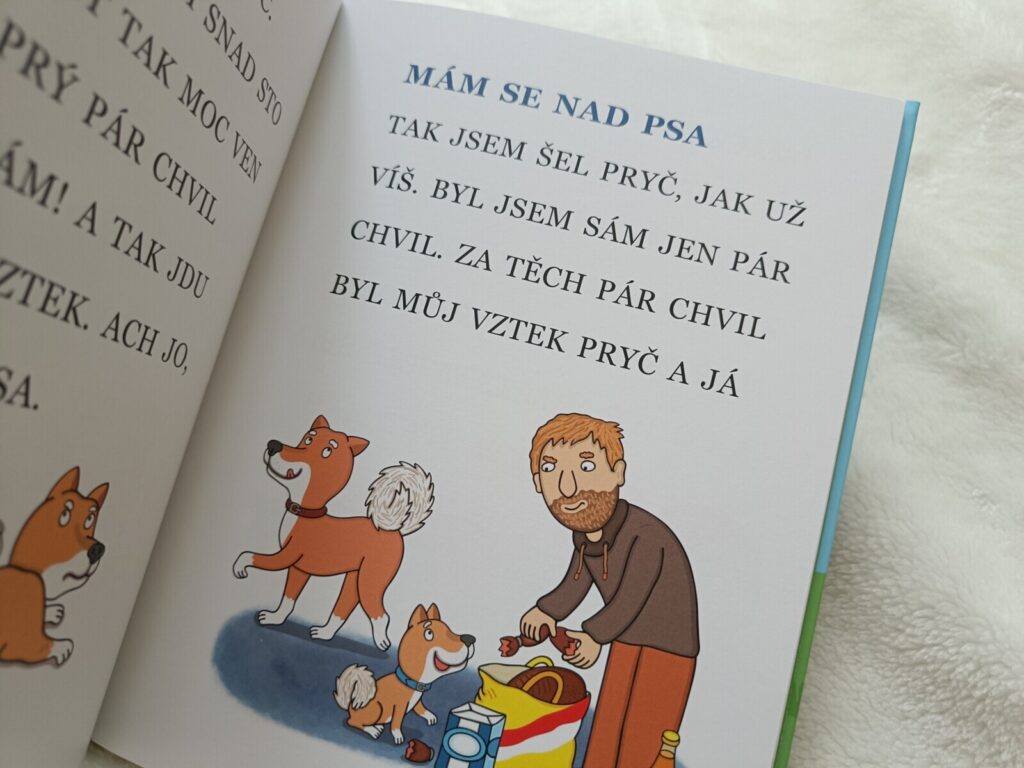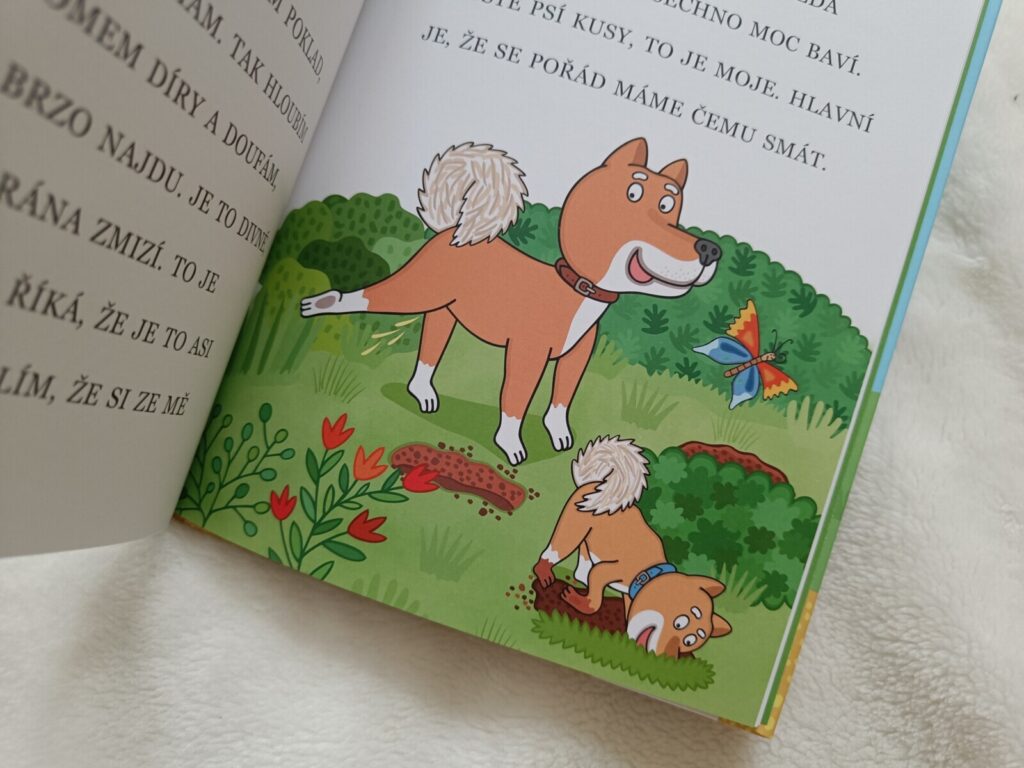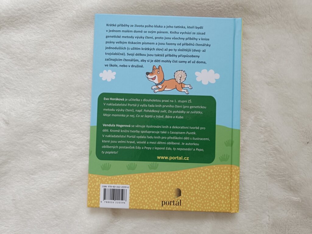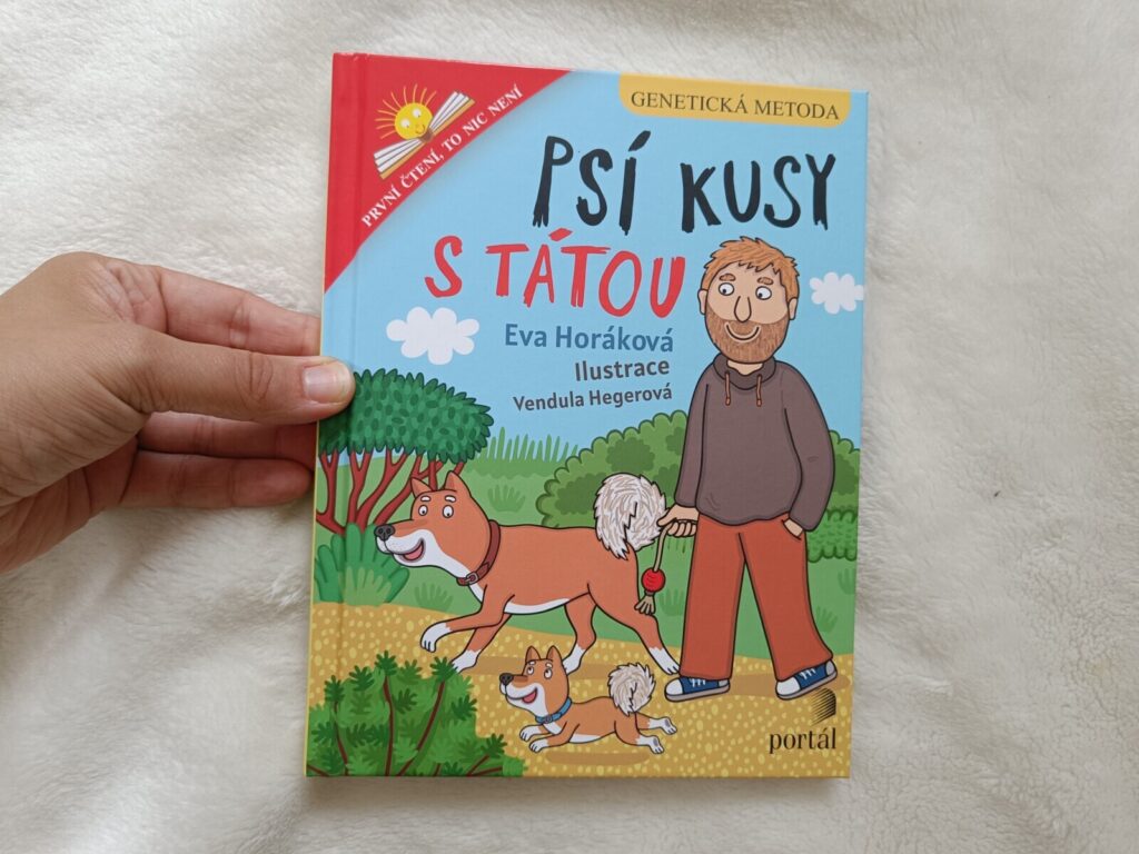O knihách pro začínající čtenáře, které jsou postaveny na genetické metodě čtení, jsem vám psala už několikrát. Doma máme například Pokojíček plný hraček, Žil byl kdysi kdesi, Auta, vlaky, bagry taky nebo Co se šeptá v trávě. Vzhledem k tomu, že doma máme začínajícího čtenáře, rozšířili jsme sbírku o další dílo z tého série, a to Psí kusy s tátou.
