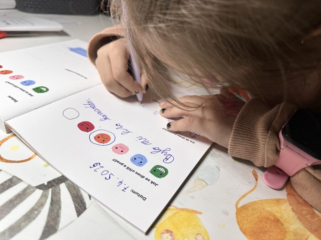 Deník vyplňujeme s Beky většinou spolu – a to hlavně proto, že díky tomu získávám i já lepší představu, co se jí honí hlavou nebo co ji trápí. Ne že bychom se doma jinak nebavili. Bavíme se poměrně hodně, často shrnujeme na konci dne, co se událo. Ale při práci s deníkem se dozvídám mnohem víc – jak se přitom cítila.