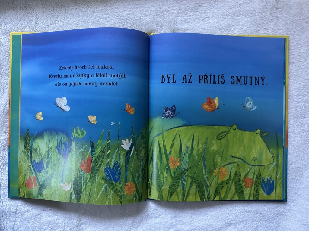 V novince Zelený hroch od Nakladatelství Portál se ukrývá krátký příběh o hrochovi, který byl velmi smutný. Protože mu někdo řekl, že zelení hroši neexistují. A on měl pocit, že nikde nepatří. Pak se ale podíval kolem sebe a zjistil, že nikdo není úplně stejný. A že naopak v různorodosti je krása. A taky že důležití jsou kamarádi. Protože ti vás mají rádi takové, jací jste. A když vám není dobře, snaží se vám pomoci i způsoby, které by vás nenapadly…