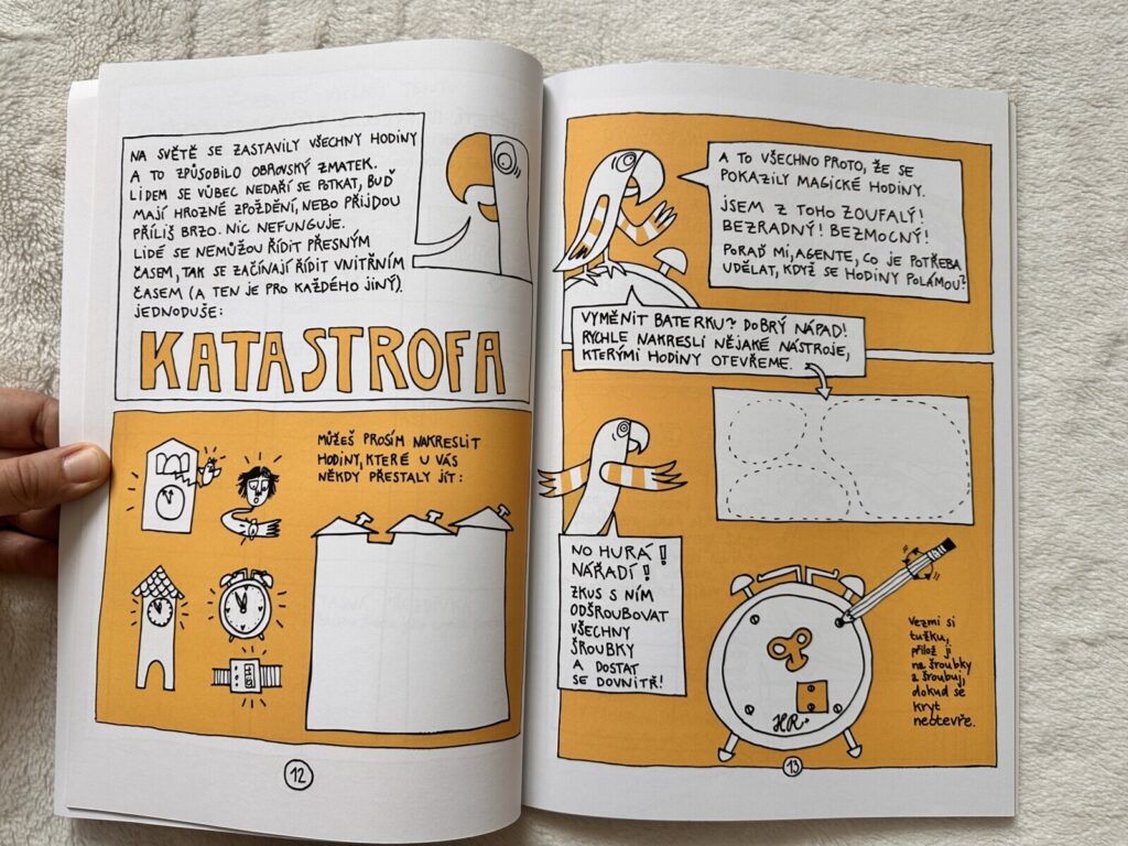Kniha používá jen tři barvy – bílou, černou a žlutou, čímž je poměrně unikátní. Úkoly mohou děti plnit přímo do sešitu, je tam na to dostatek místa rovnou v příběhu.