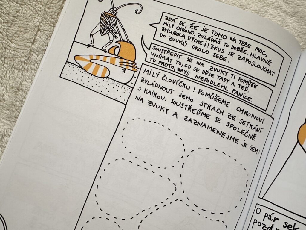 A pak může začít to pořádné dobrodružství! Děti budou při plnění úkolů kreslit například to, co jim pomáhá se uklidnit. Budou si všímat, z čeho bývají víc nervozní nebo co je v poslední době nejvíce rozčílilo. Kniha tak spojuje zábavné a logické úkoly, prověří všímavost, ale hlavně děti vede k uvědomění si, co jim přináší v životě těžkosti či nedobrou náladu a mohou se naučit, jak s tím lépe pracovat.